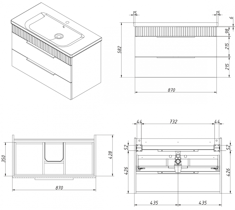 Тумба подвесная для раковины 90см с 2 ящиками. Выпускается в отделках из реестра MODERN.