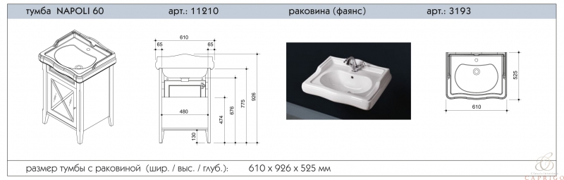 Тумба Napoli 60 выпускается в отделках из Реестра отделок мебели CLASSIC.