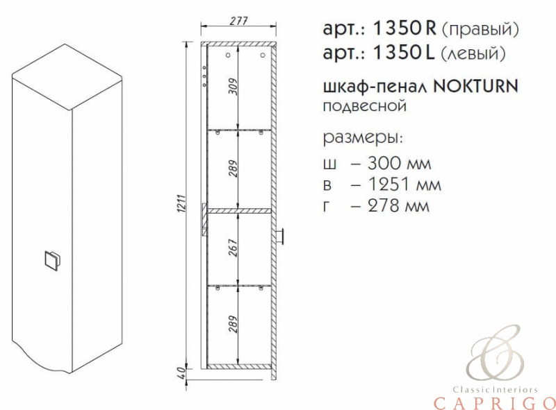 Подвесной шкаф-пенал NOKTURN выпускается в отделках ТР-019 КАПУЧЧИНО и TP-800 МАГНОЛИЯ на склад.Остальные отделки под заказ.Дверь открывается вправо или влево в зависимости от распроложения петлей.