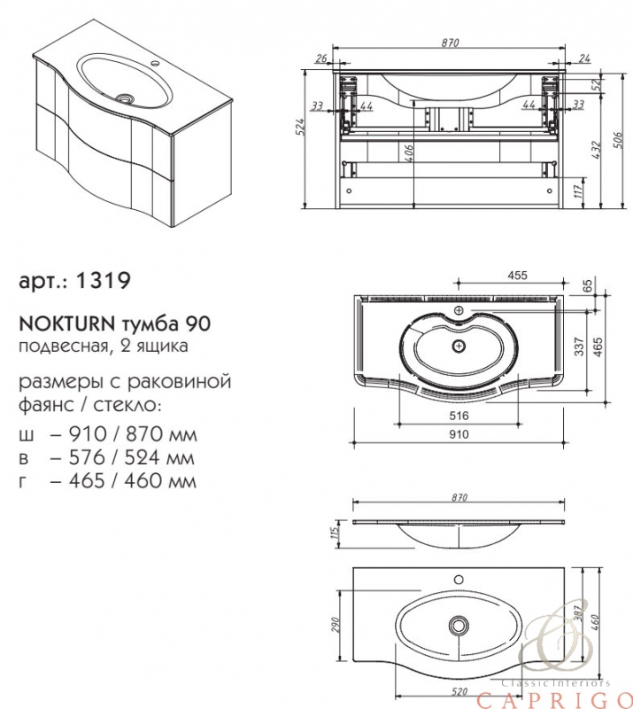 NOKTURN тумба 90 подвесная, 2 ящика выпускается на склад в отделках: арт. TP-019 арт. TP-800 производится под заказ в любых отделках MODERN один выдвижной ящик. Раковины продаются отдельно