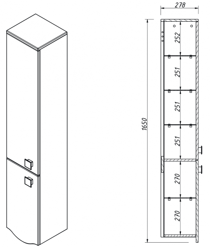 | Габаритные размеры изделия, ш/г/в, в см | 30/ 27,8/ 165 |
