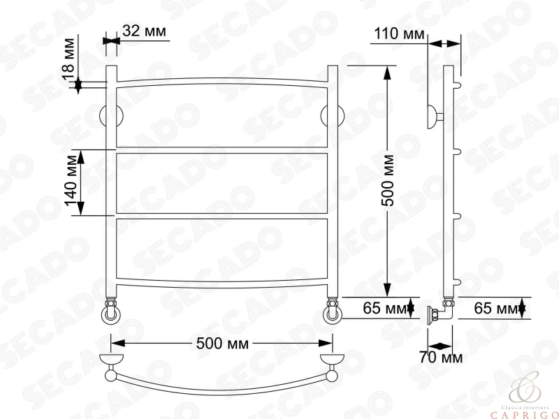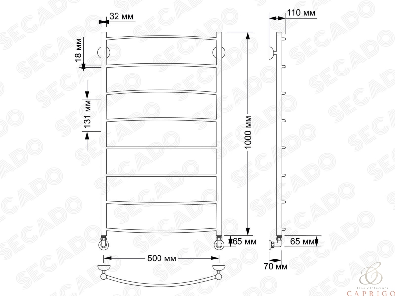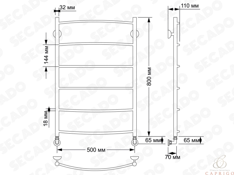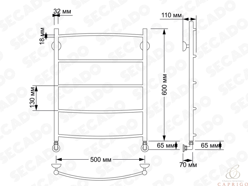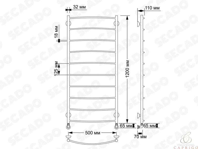 Полотенцесушитель латунный водяной Милан 1 32/18 от производителя Secado