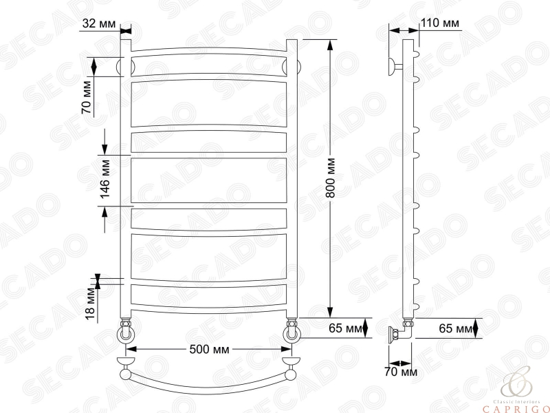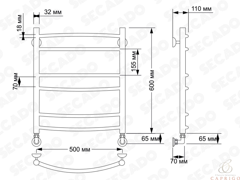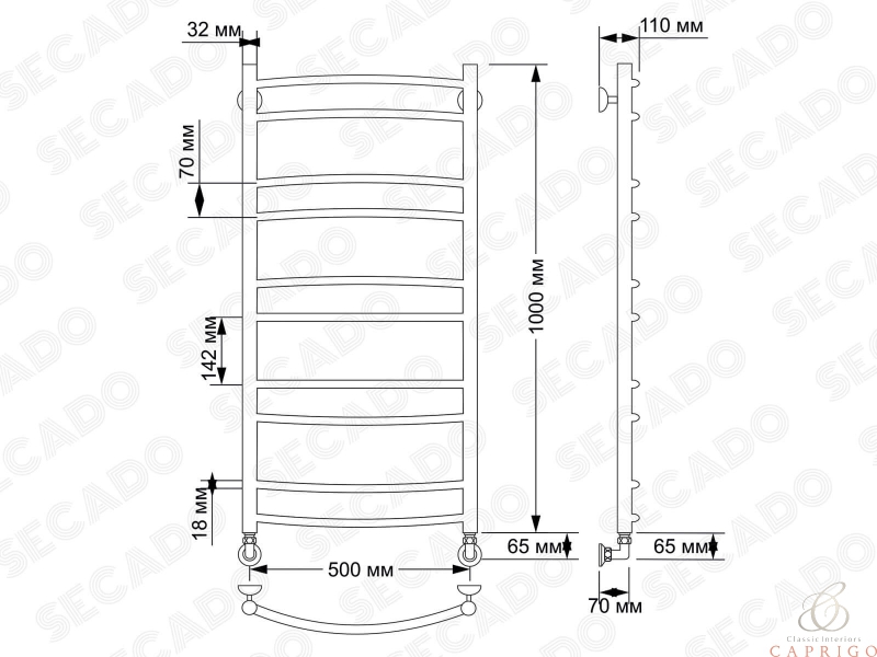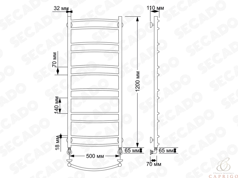 Полотенцесушитель латунный водяной Милан 2 32/18 от производителя Secado