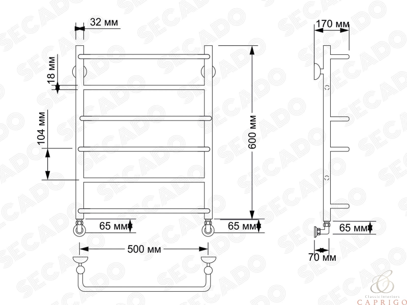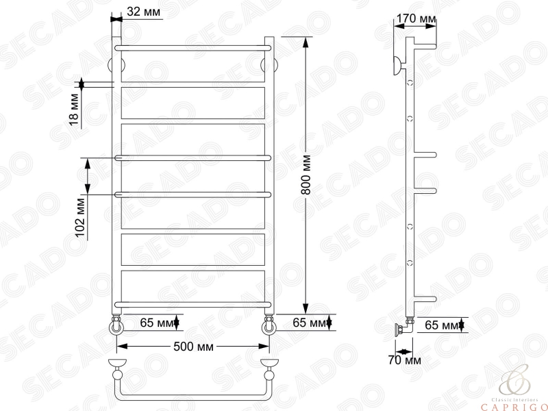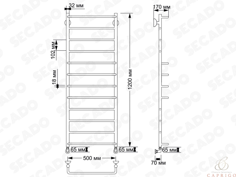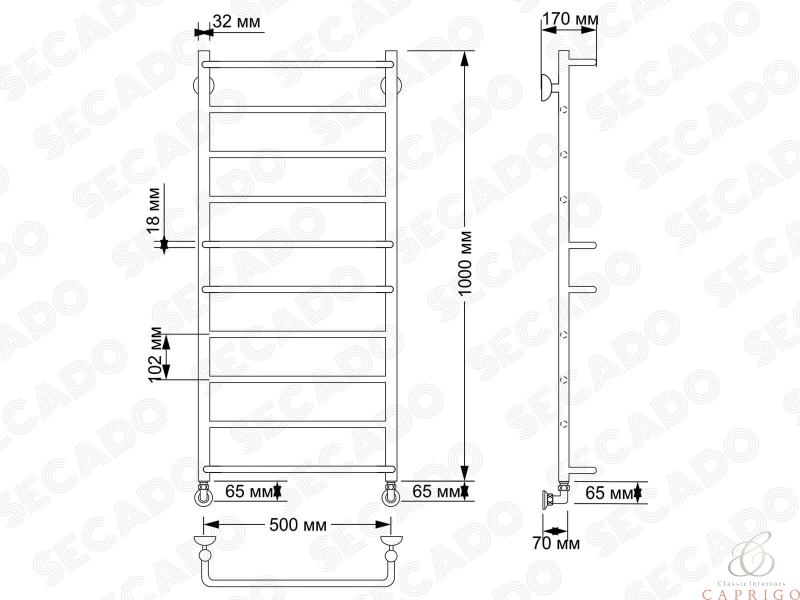 Полотенцесушитель латунный водяной Верона 1 32/18 от производителя Secado