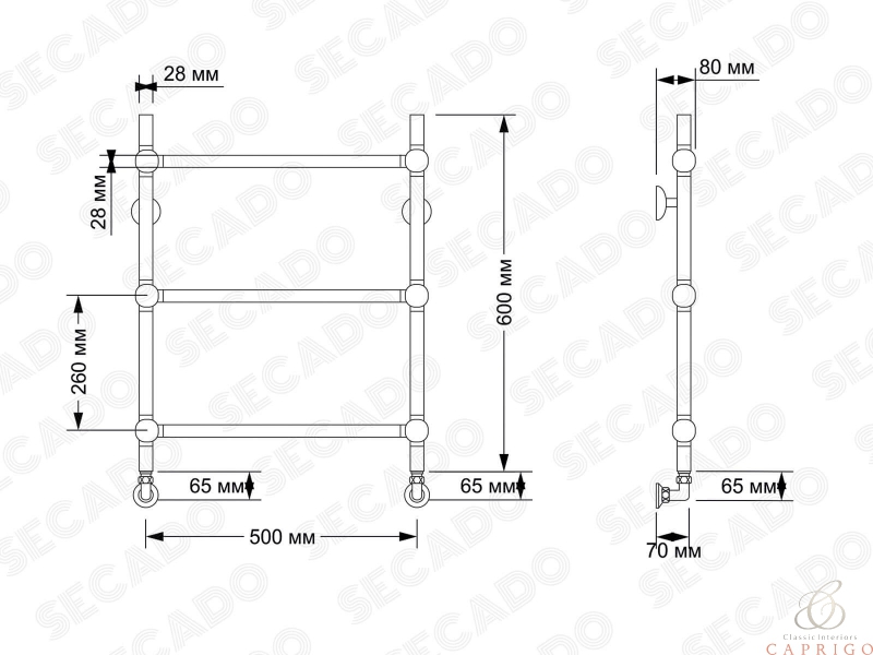 Полотенцесушитель латунный водяной Флоренция 1 28/28 от производителя Secado
