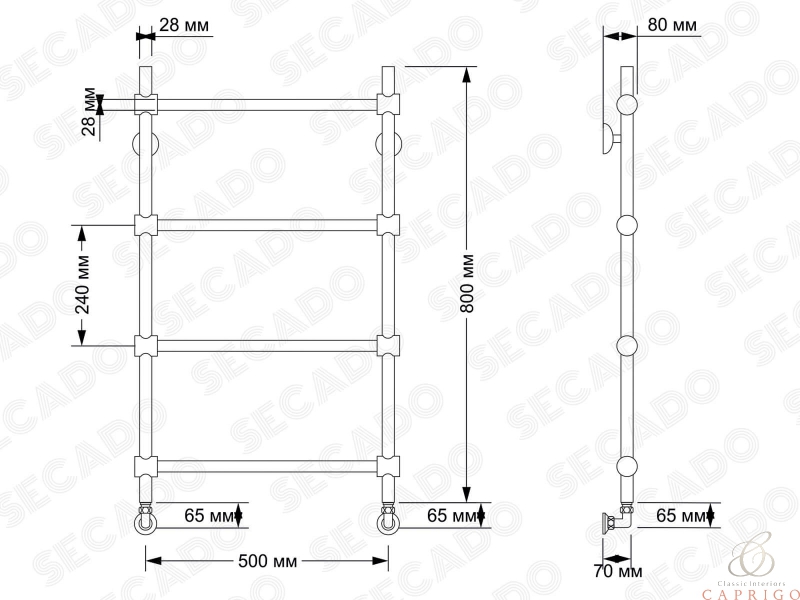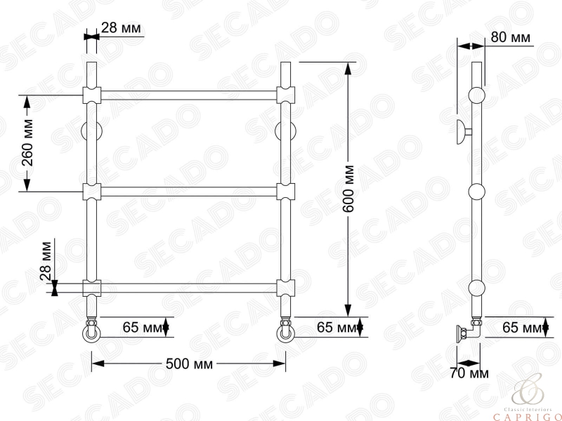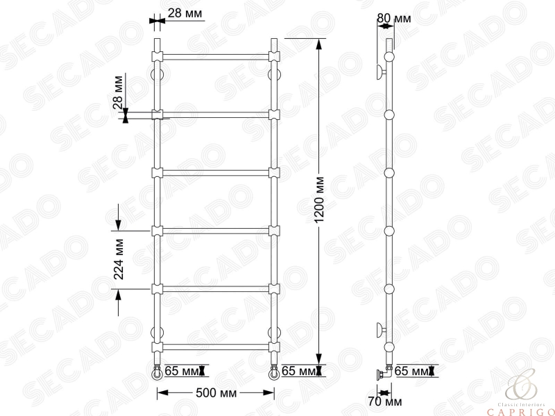 Полотенцесушитель латунный водяной Флоренция 2 28/28 от производителя Secado