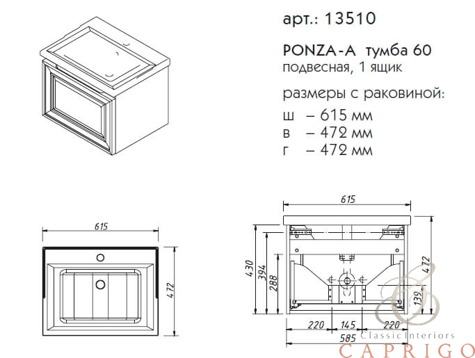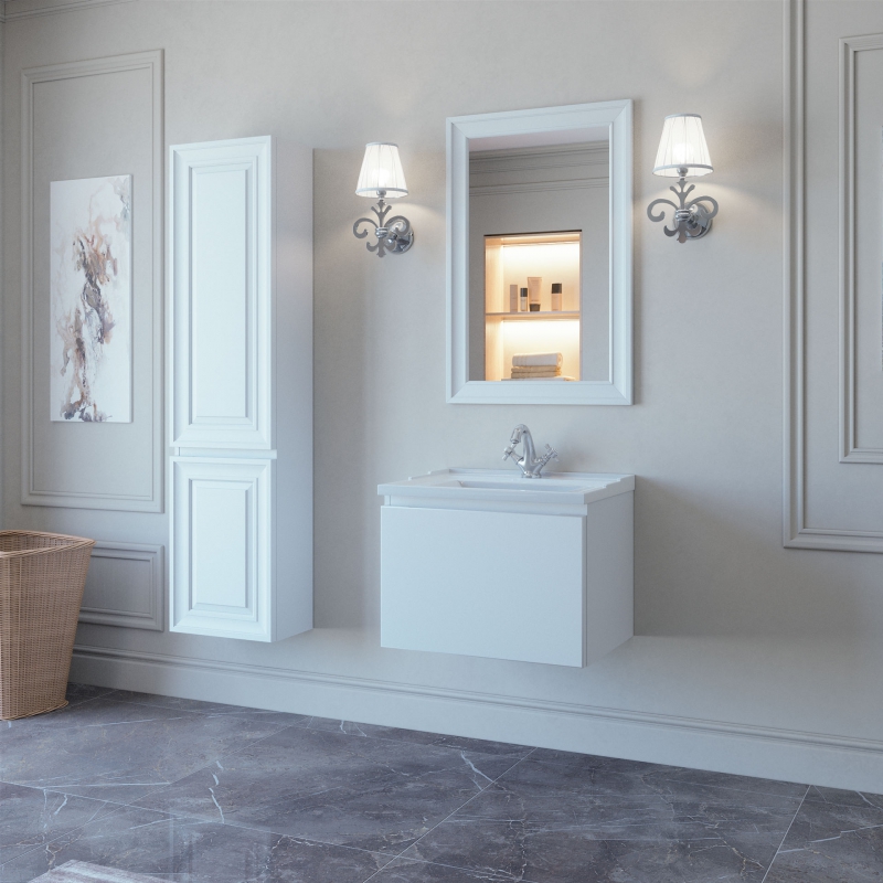 PONZA-A подвесная тумба 60 производится только в отделках цветными эмалями согласно реестру отделок. раковина (фаянс) продается. Фасад рельефный или плоский на выбор.