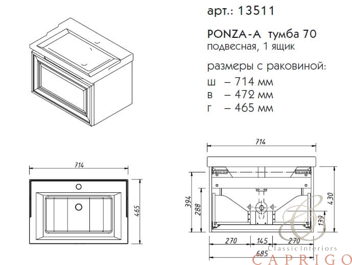 PONZA-A подвесная тумба 70 производится только в отделках цветными эмалями согласно реестру отделок. Отдельно продается раковина (фаянс) Фасад рельефный или плоский на выбор.