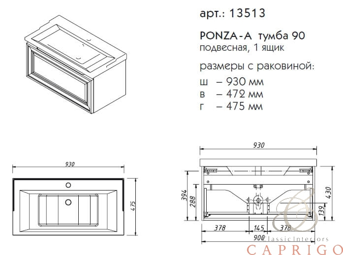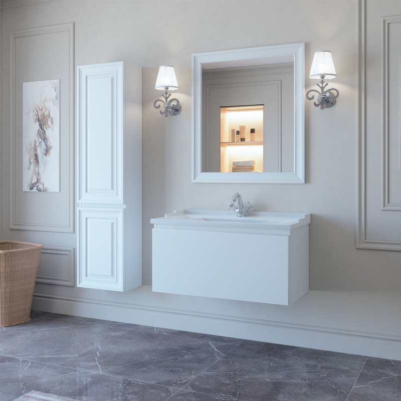 PONZA-A подвесная тумба 90 см производится только в отделках цветными эмалями согласно реестру отделок. раковина (фаянс) продается отдельно. Фасад рельефный или плоский на выбор.