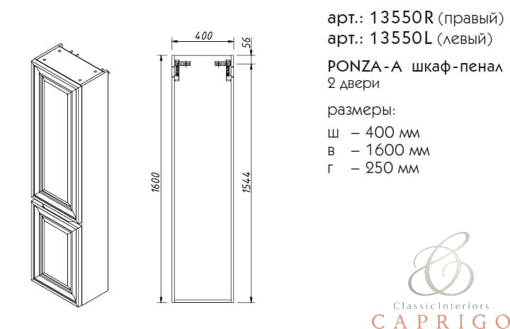 PONZA-A подвесной шкаф-пенал производится только в отделках цветными эмалями согласно реестру отделок 3 стеклянные полки