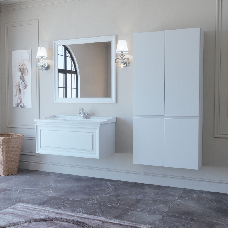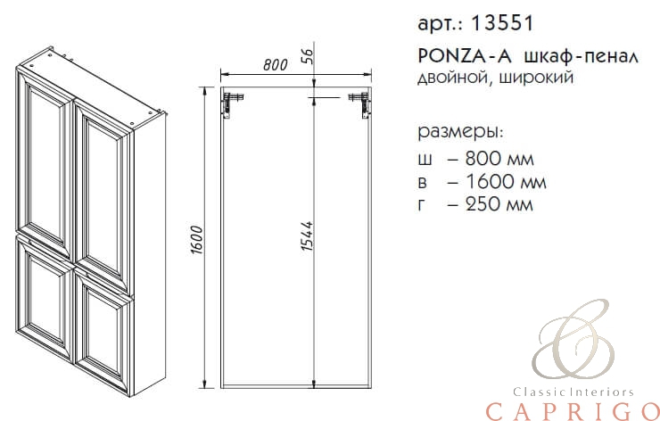 PONZA-A подвесной шкаф-пенал двойной производится только в отделках цветными эмалями согласно реестру отделок 6 стеклянные полки