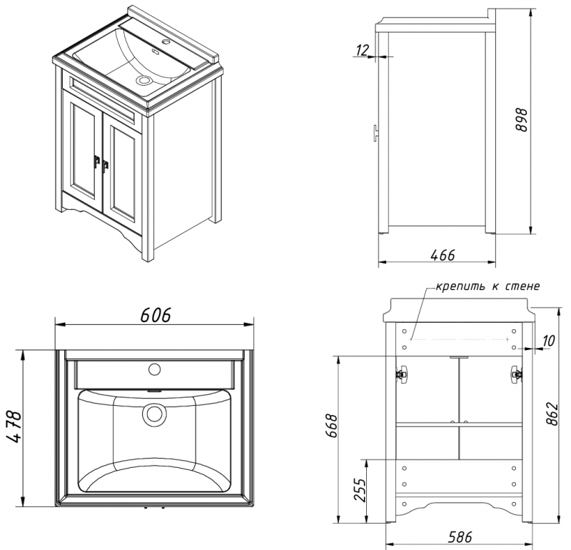 Тумба PRESTON для раковины 60см, 2 двери. Производится под заказ в любых отделках из реестра CONCEPT , кроме SF027 Бланж. Внутри 1 полка