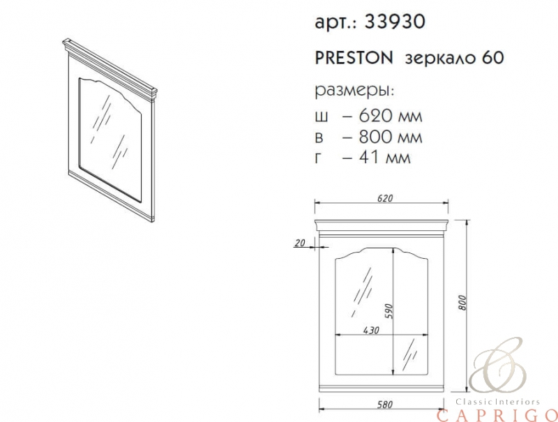 PRESTON зеркало 60 выпускается на склад в отделках: арт. L-812 производится под заказ в любых отделках из Реестра отделок "CONCEPT" без фацета