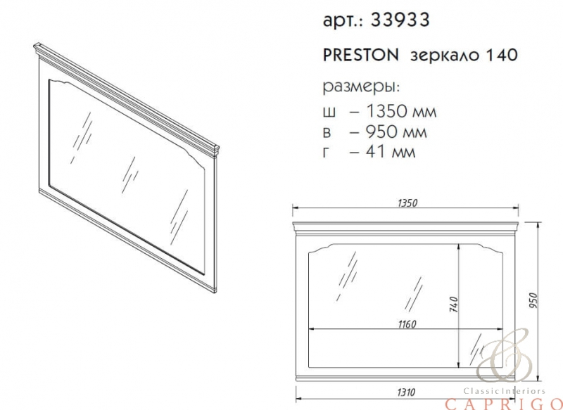 PRESTON зеркало 140 выпускается на склад в отделках: арт. L-812 производится под заказ в любых отделках из Реестра отделок "CONCEPT" без фацета