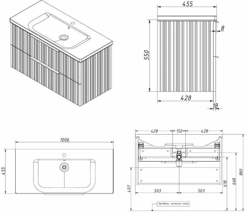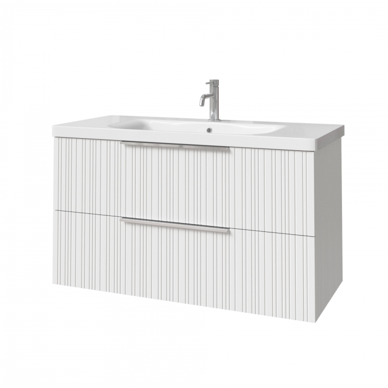 Тумба подвесная для раковины 100см с 2 ящиками. Фреза на фасадах и боках. Выпускается в отделках из реестра MODERN.