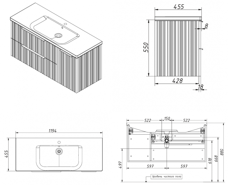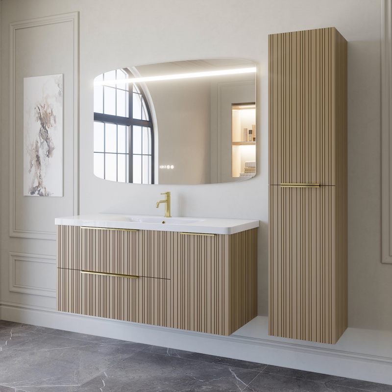Тумба подвесная для раковины 120см с 2 ящ.и и 1 дверью. Фреза на фасадах и боках. Выпускается в отделках из реестра MODERN.