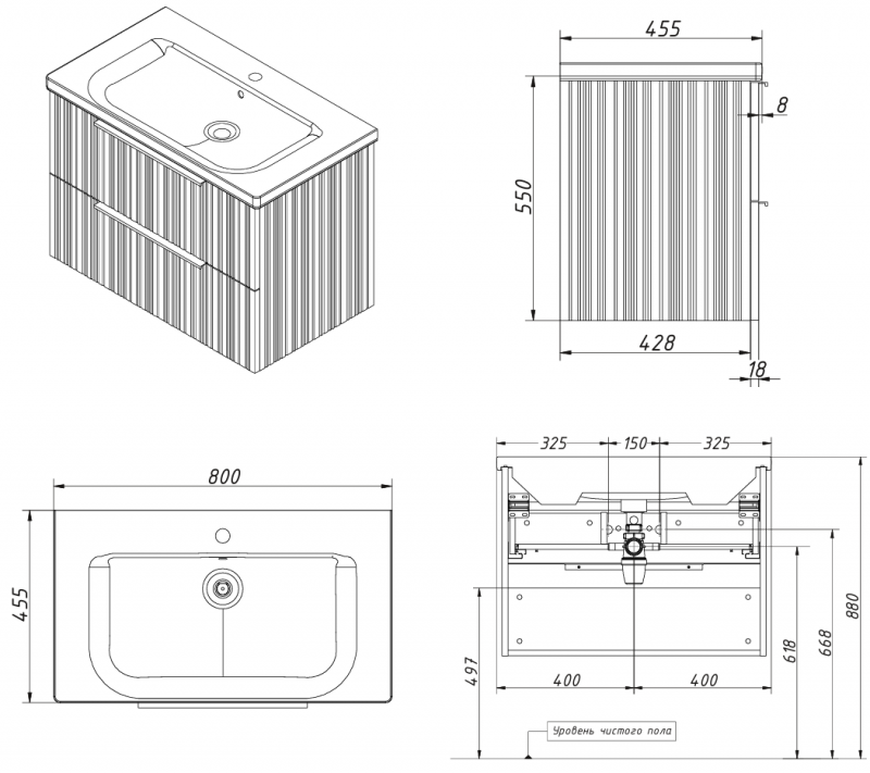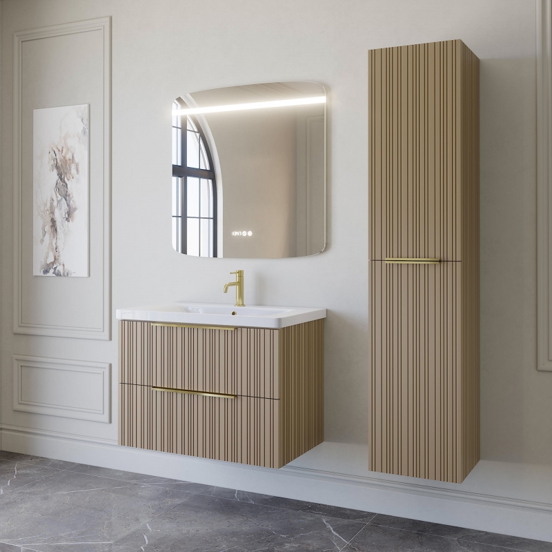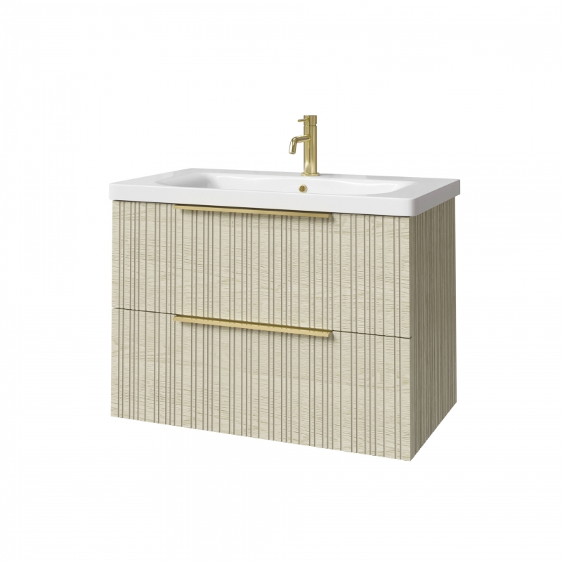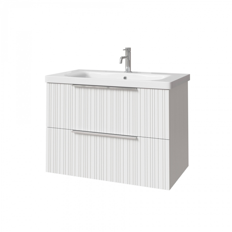 Тумба подвесная для раковины 80см с 2 ящиками. Фреза на фасадах и боках. Выпускается в отделках из реестра MODERN.