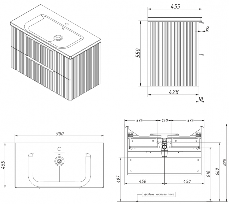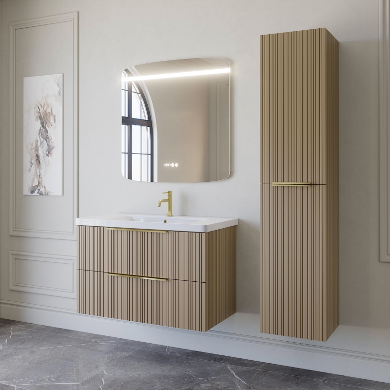 Тумба подвесная для раковины 90см с 2 ящиками. Фреза на фасадах и боках. Выпускается в отделках из реестра MODERN.