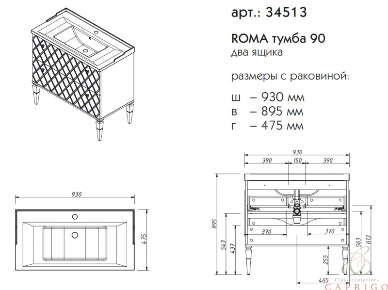 ROMA тумба 90 два ящика производится под заказ в любых отделках "SOFTTOUCH" из реестра отделок CONCEPT Фаянсовая раковина продается отдельно