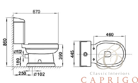 | Комплект | унитаз-компакт, комплект креплений, кнопка двойного слива(золото), сиденье |