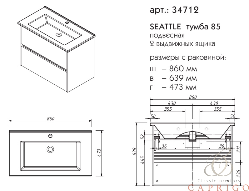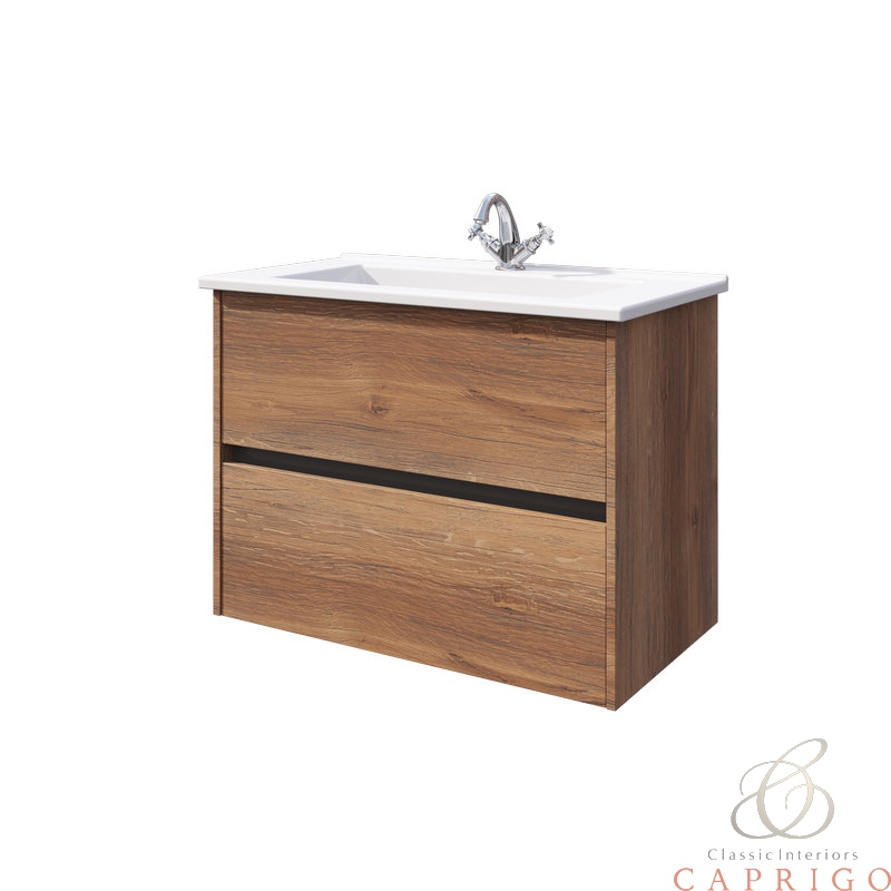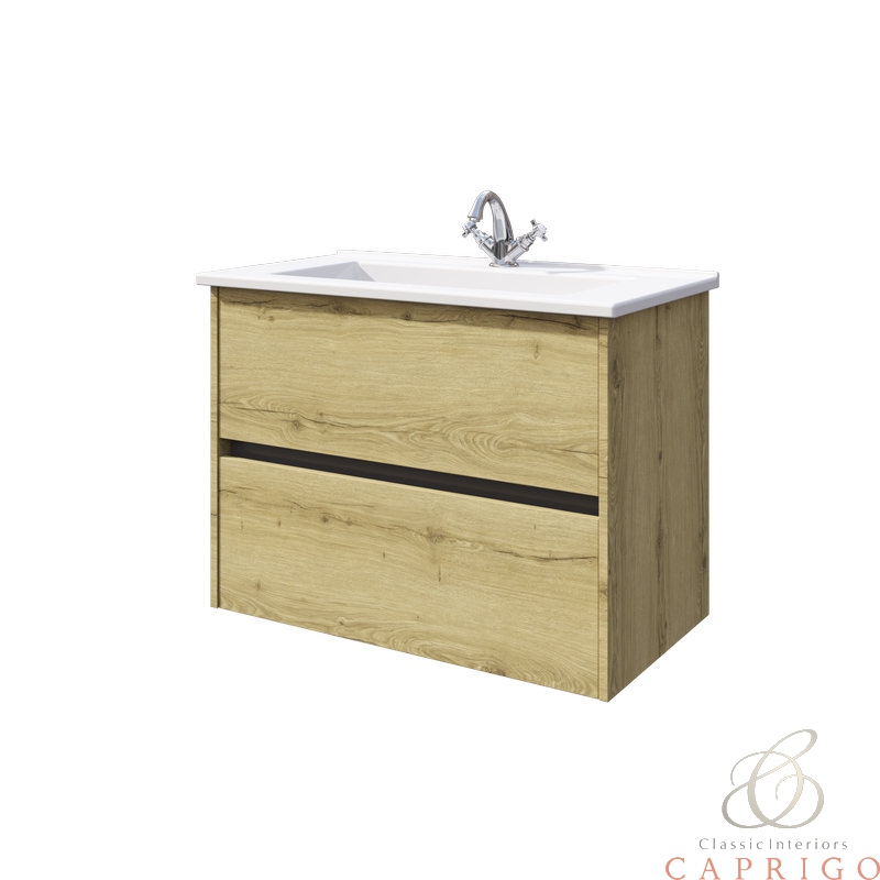 SEATTLE подвесная тумба 85 см выпускается в отделках: ЭКОШПОН – NATURA раковина Кировит (фаянс) 2 выдвижных ящика
