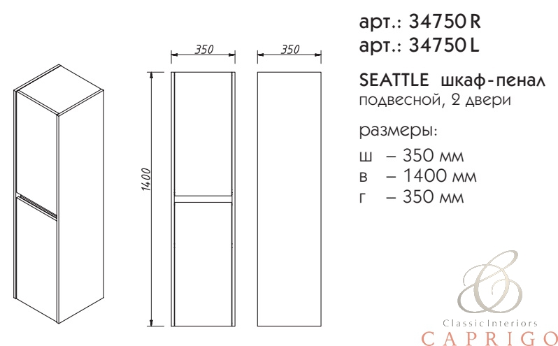 SEATTLE подвесной шкаф-пенал левый выпускается в отделках: ЭКОШПОН – NATURA 2 двери