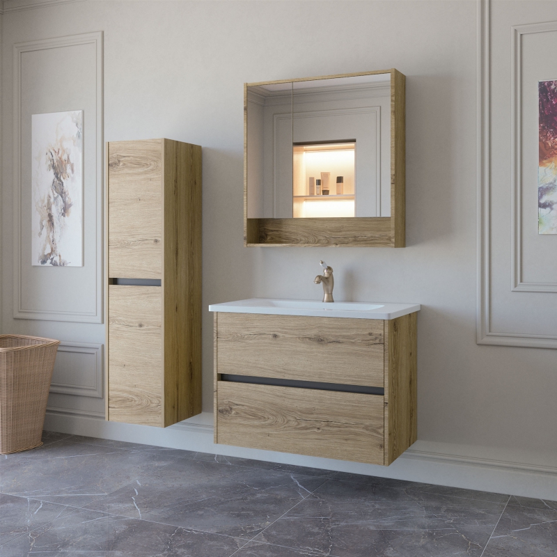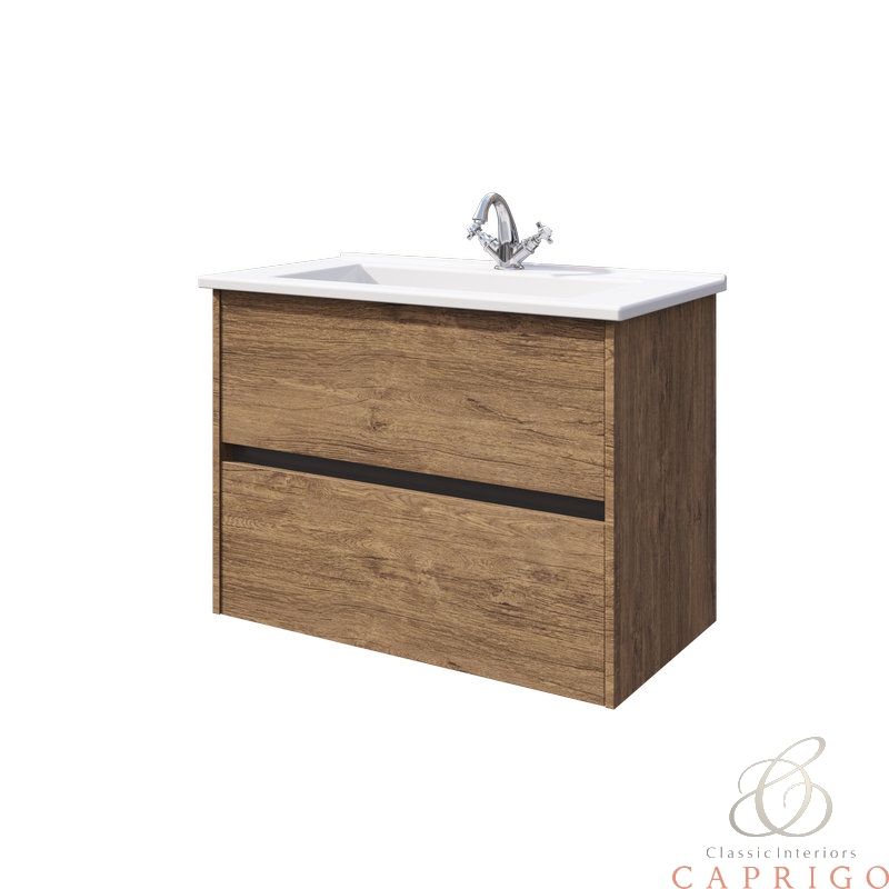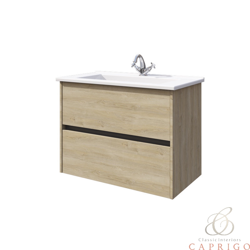 SEATTLE подвесная тумба 80 см выпускается в отделках: ЭКОШПОН – NATURA раковина Кировит (фаянс) 2 выдвижных ящика