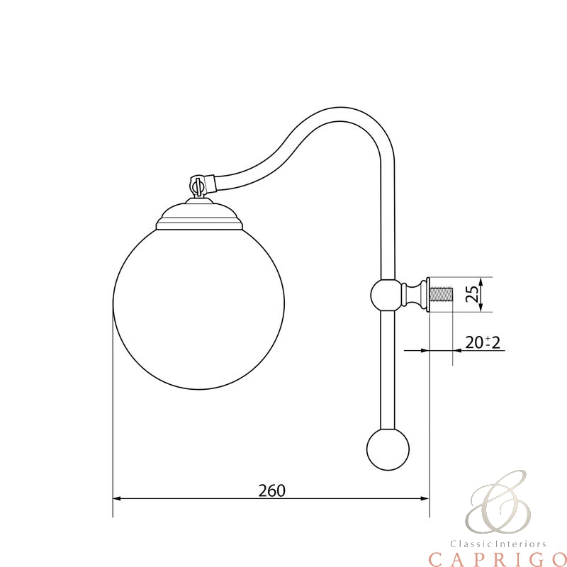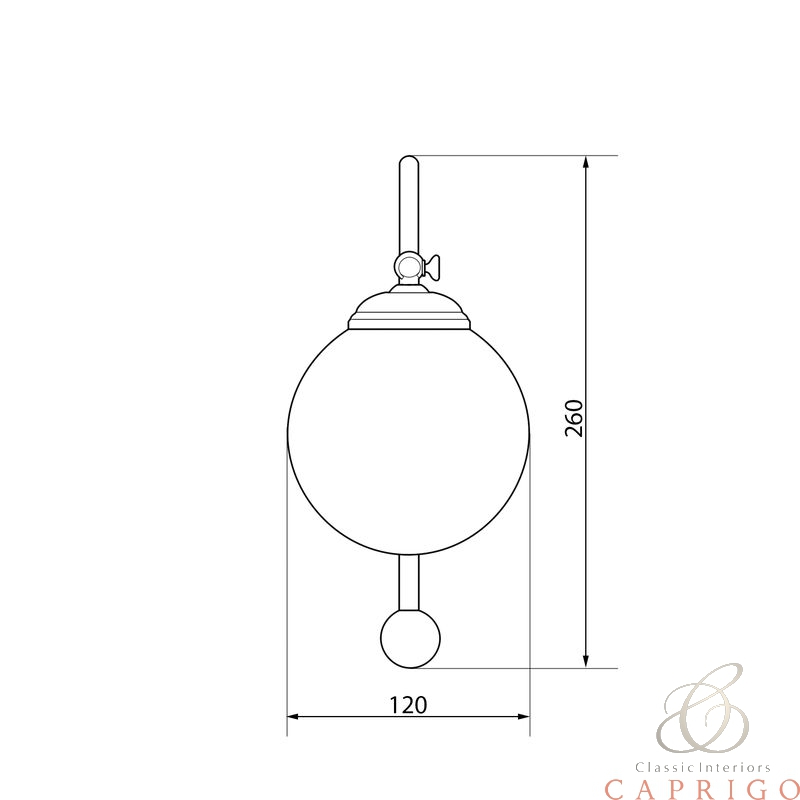 светильник с креплением к рамке зеркала Caprigo, плафон стекло D 100 мм, патрон для лампы E14, покрытие хром или бронза