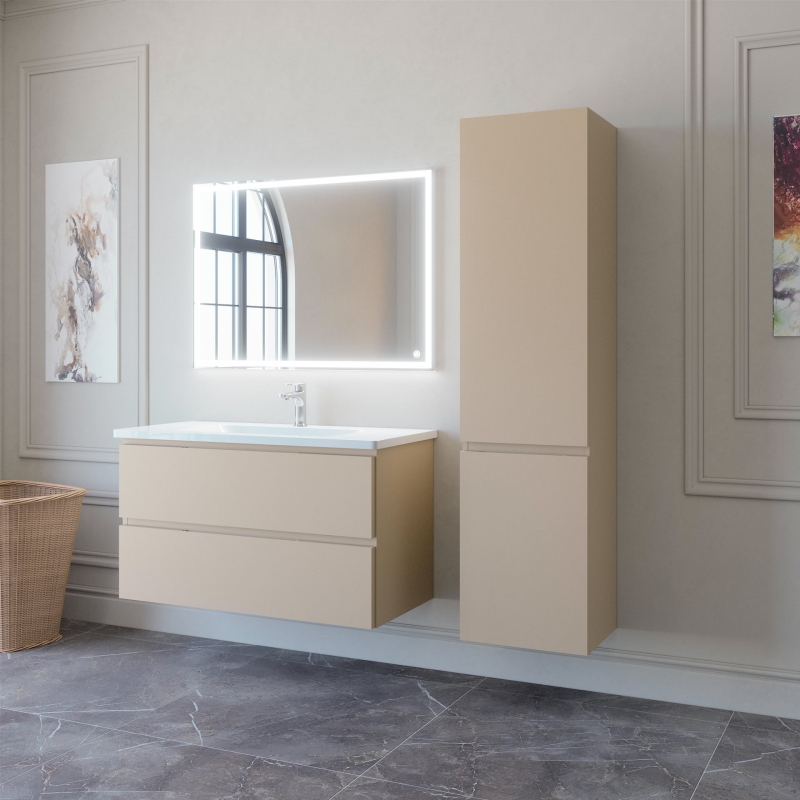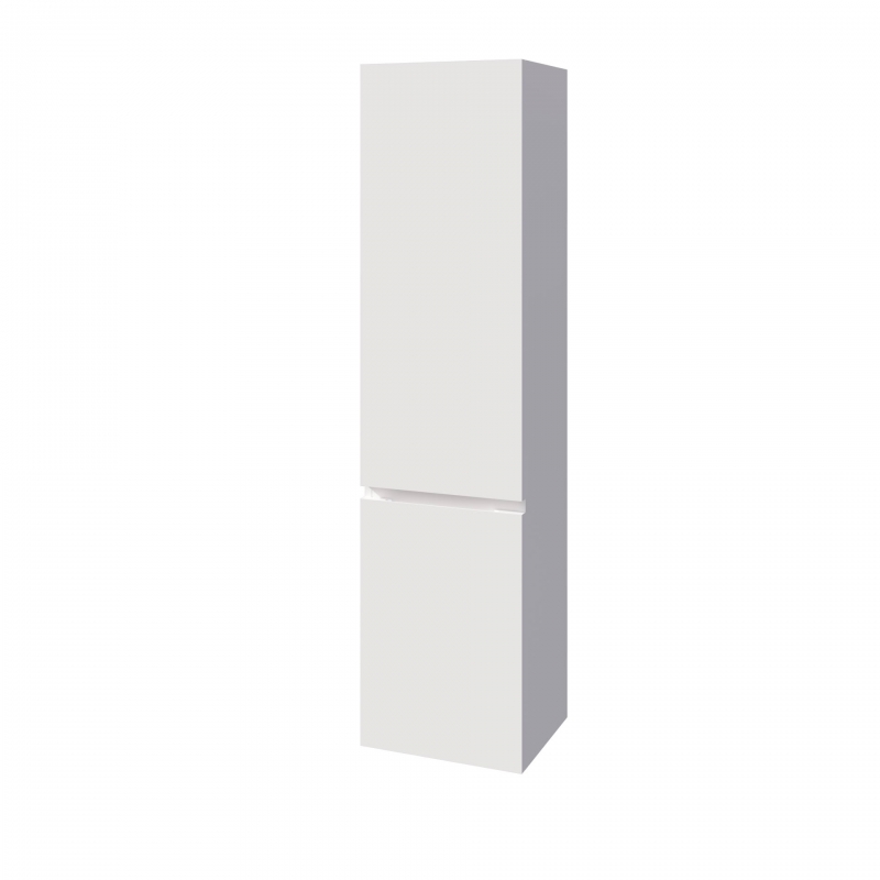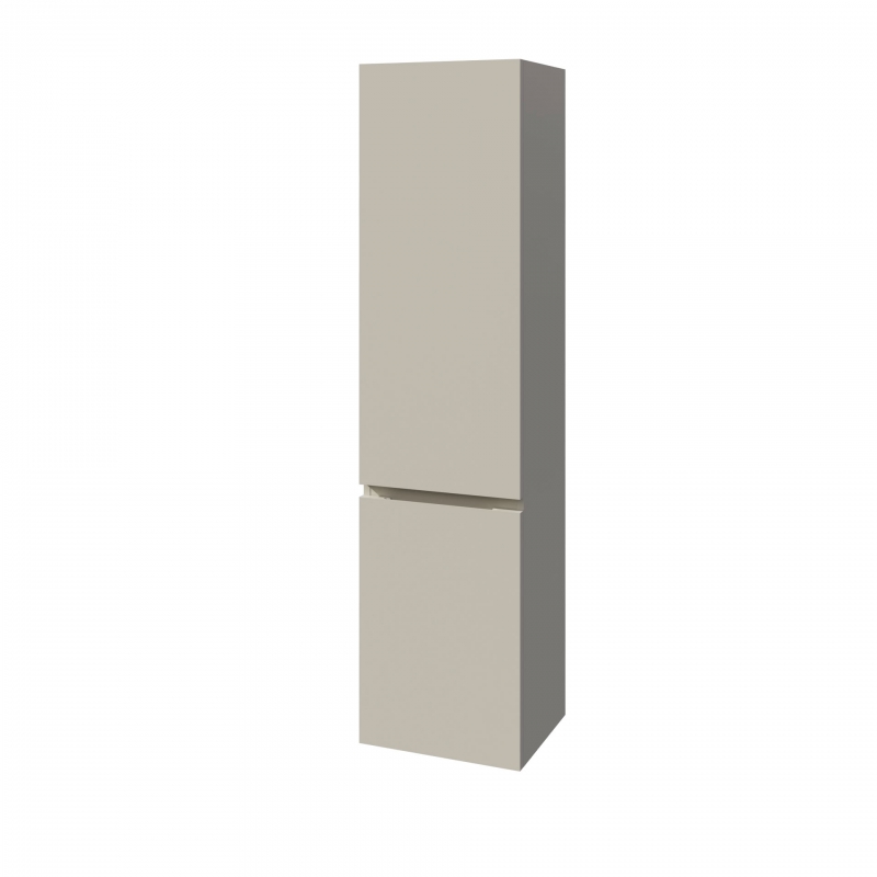 Шкаф-пенал подвесной с 2 дверьми. Ручки интегрированные в фасады. Выпускается в Матовых и Текстурированных отделках из реестра MODERN (ограничение по глянцевым отделкам). Внутри 4 полки.