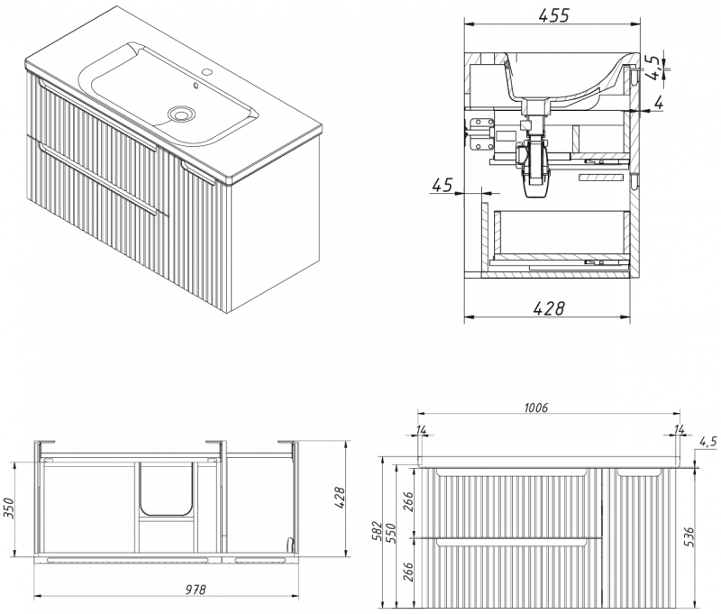 | Габаритные размеры тумба + раковина, ш/г/в, в см: | 100/ 45,5/ 58 |