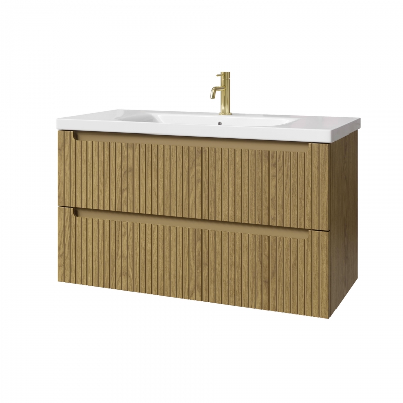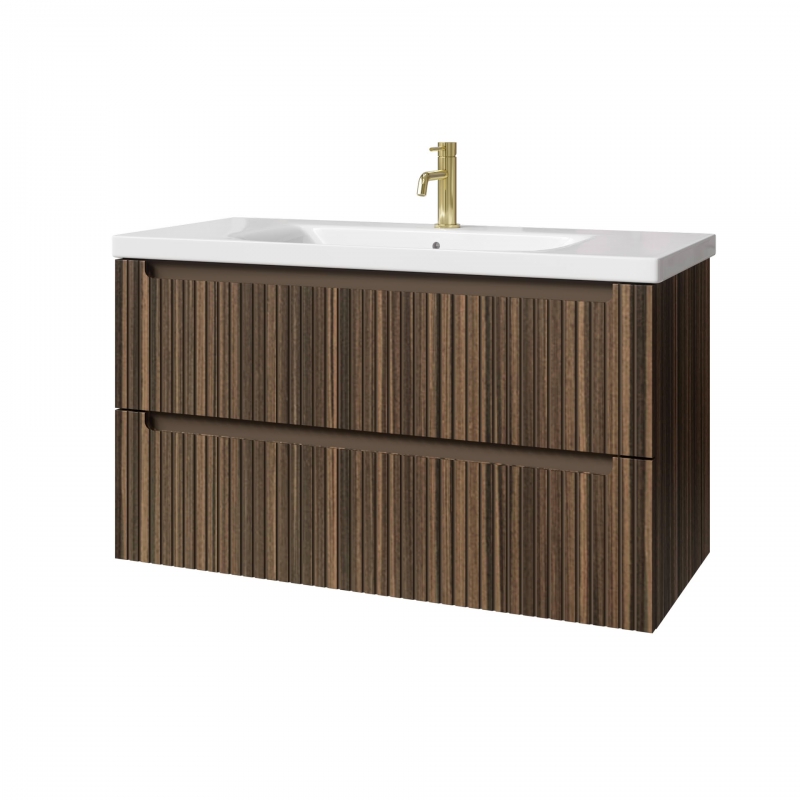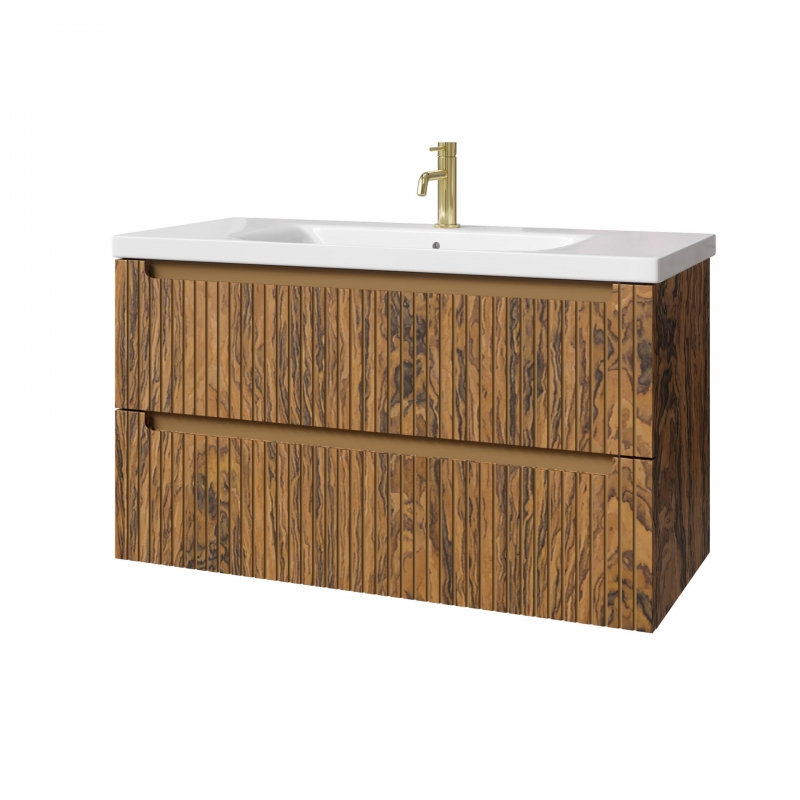 Тумба подвесная для раковины 100см с 2 ящиками. С фрезеровкой на фасадах. Выпускается в отделках Натуральным Шпоном.
