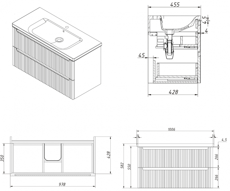 | Габаритные размеры тумба + раковина, ш/г/в, в см: | 100,6/ 45,5/ 58,2 |