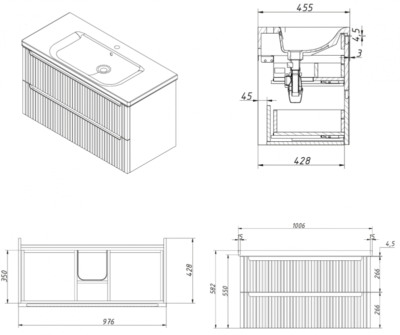 | Габаритные размеры тумба + раковина, ш/г/в, в см: | 100,6/ 45,5/ 58 |