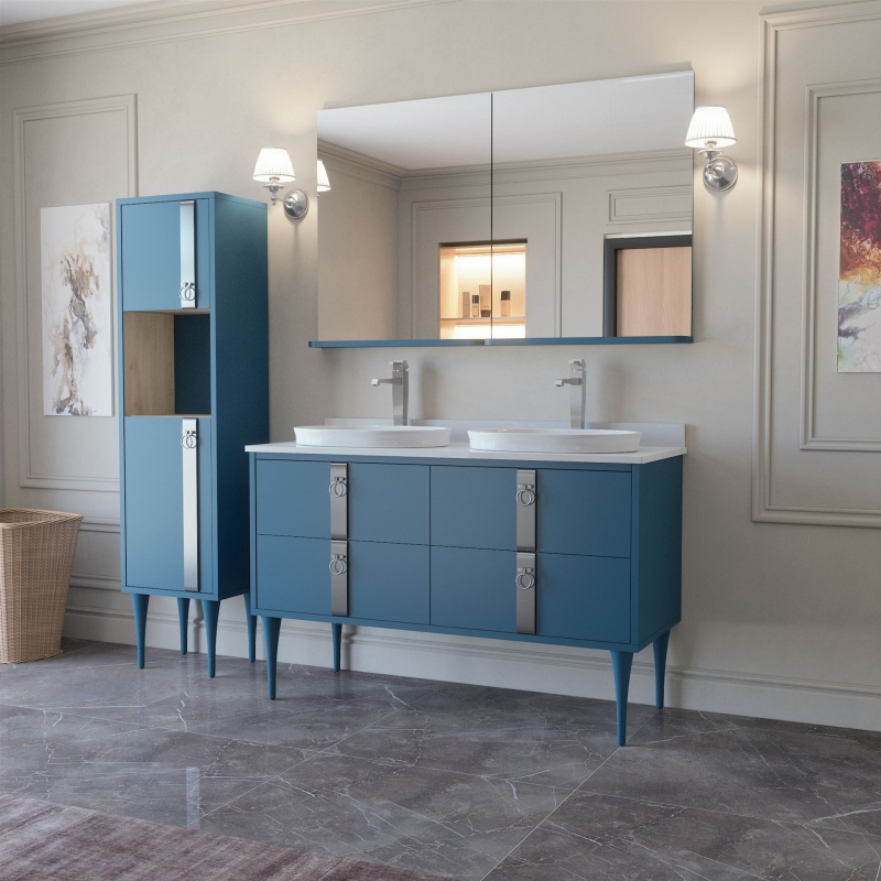 производится под заказ в отделках ■ чистыми Эмалями из Реестра отделок CLASSIC ■ декор полос на фасадах в отделках:ORO (золото),STEEL(сталь) варианты врезных раковин фаянс отдельно заказывается столешница