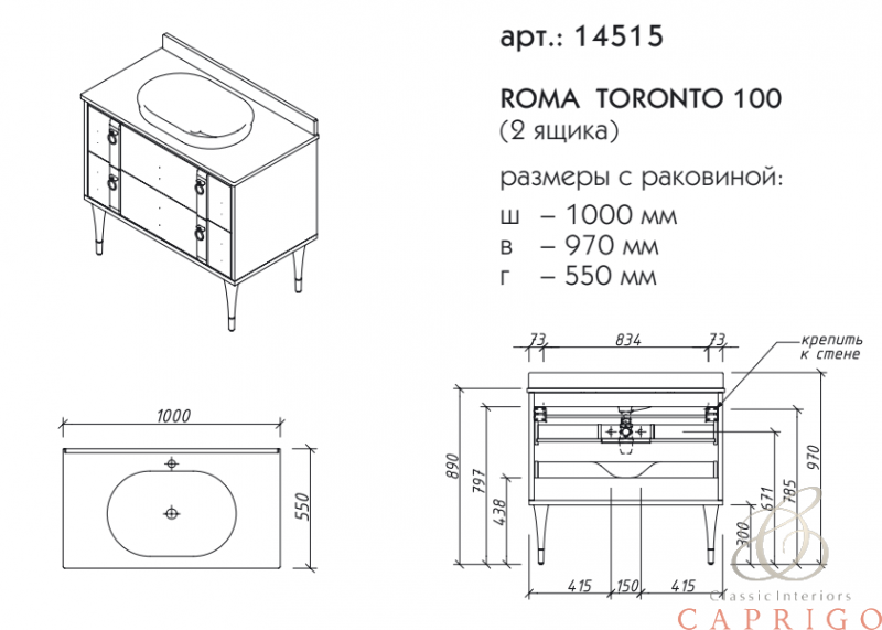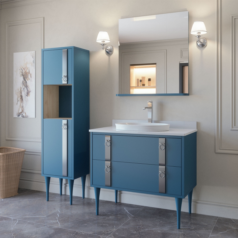 производится под заказ в отделках ■ чистыми Эмалями из Реестра отделок CLASSIC ■ декор полос на фасадах в отделках:ORO (золото), STEEL(сталь) варианты врезных раковин (фаянс) отдельно заказывается столешница
