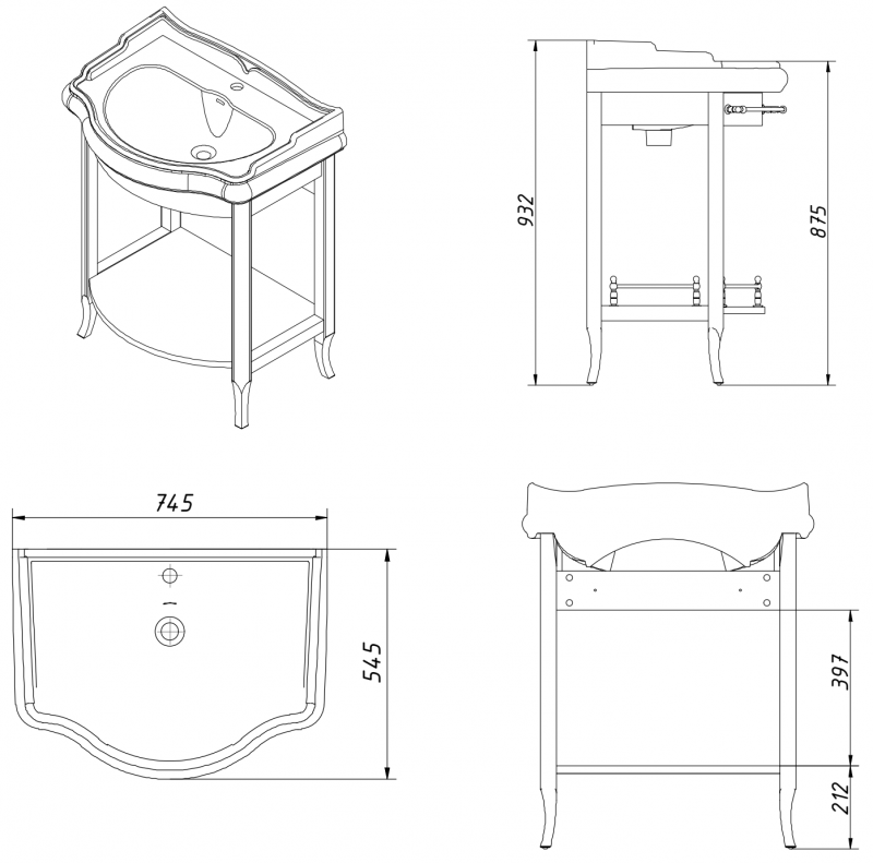 Консоль для раковины 73см открытая. Выпускается в любых отделках из Реестра отделок CLASSIC без патинирования. Ограждения и полотенцедержатель заказывается отдельно.