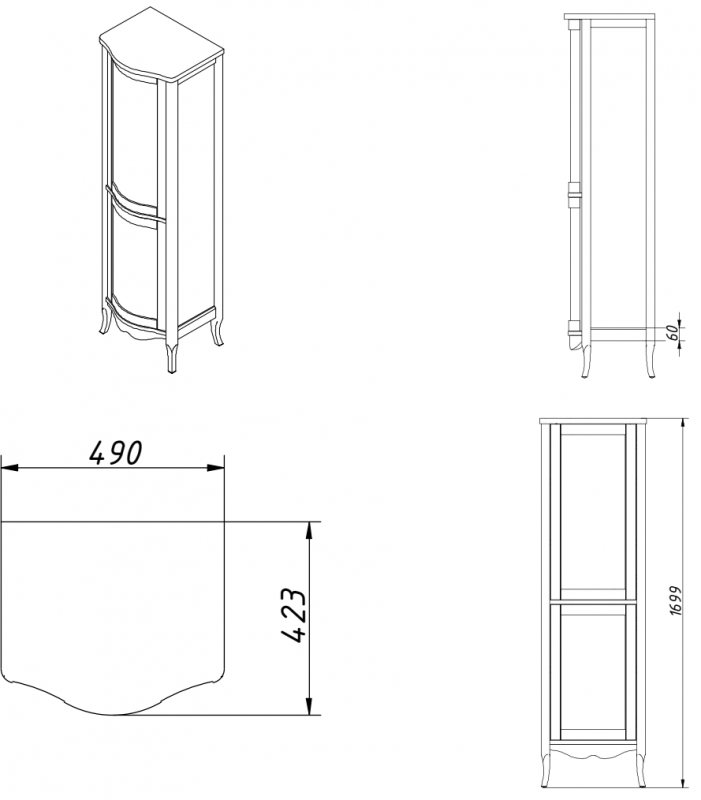 шкаф-пенал TREVI левый выпускается в отделках из Реестра отделок CLASSIC без патинирования три стеклянные полки 4 мм