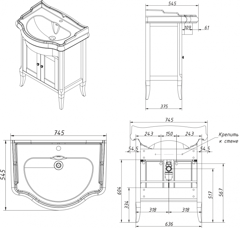 | Габаритные размеры тумба + раковина, ш/г/в, в см: | 74,5/ 54,5/ 93,2 |