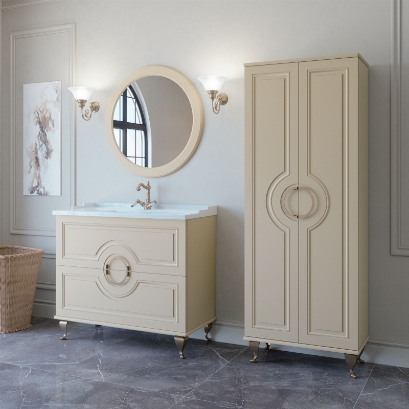 Шкаф-пенал VALLETTA идеально подходит для хранения ванных принадлежностей, косметики, полотенец и других бытовых предметов. Благодаря универсальному дизайну он легко сочетается с другими элементами коллекции, позволяя создать целостный интерьер.