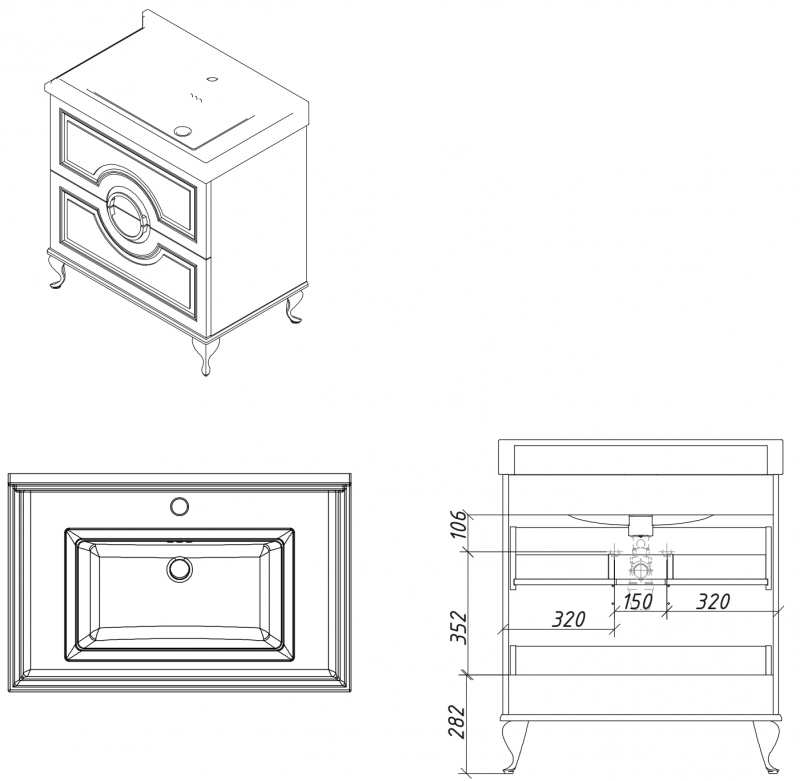 Тумба для раковины 80см с 2 ящиками. Выпускается в любых отделках из реестра "CONCEPT"
