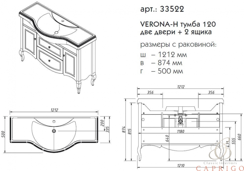 VERONA-H тумба 120 две двери + два ящика выпускается в любых отделках из реестра "CONCEPT", кроме SF027