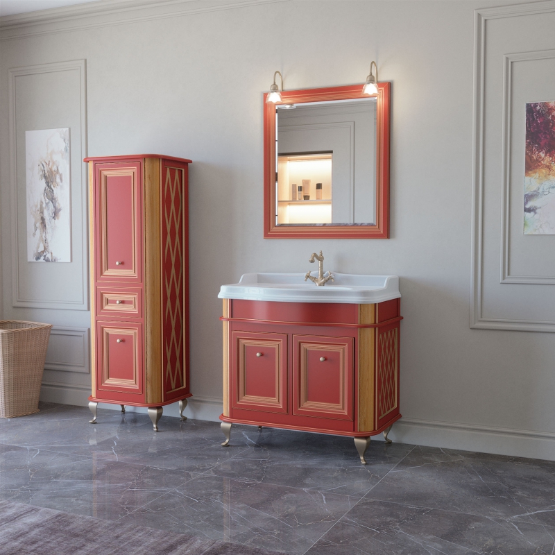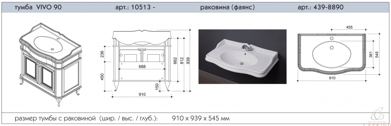 тумба VIVO 90 производится в спецотделке B-018, а также в отделках Категории ЭМАЛИ Реестра отделок "CLASSIC" тумба полкой не комплектуется раковина (фаянс)