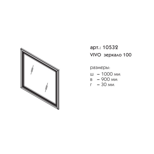 зеркало VIVO 100 Производится в спец. отделке В018, а также в любых отделках из реестра отделок CLASSIC зеркальный фацет 25 мм