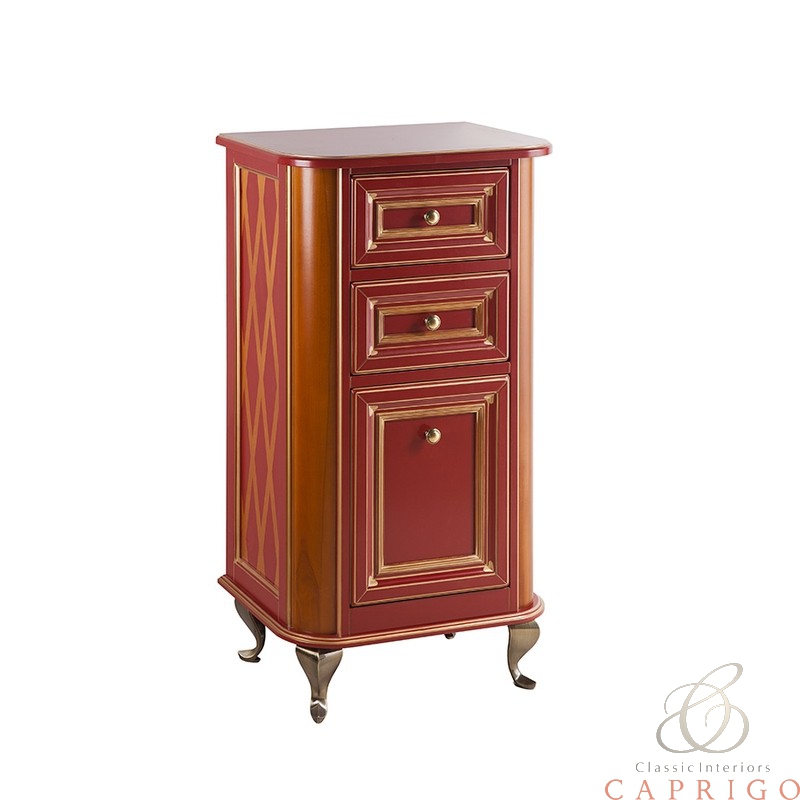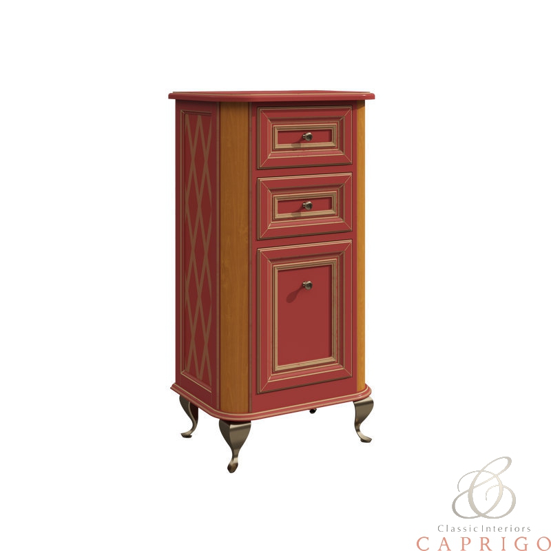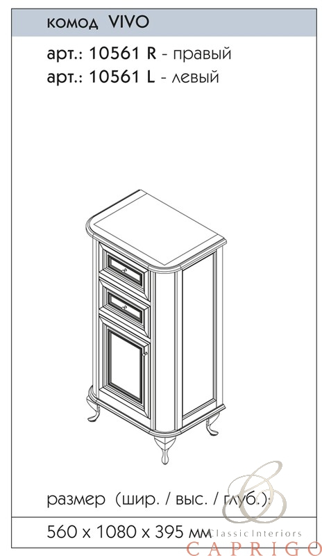 комод VIVO правый производится в спецотделке B-018, а также в отделках Категории ЭМАЛИ Реестра отделок "CLASSIC" только по всем фасадным (внешним) поверхностям. (При заказе 100% отделке ЭМАЛЬЮ - наценка 35%.) полкой не комплектуется два выдвижных ящика
