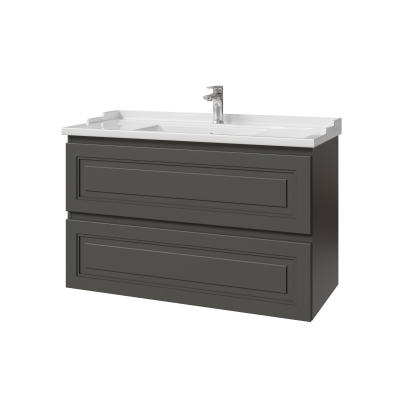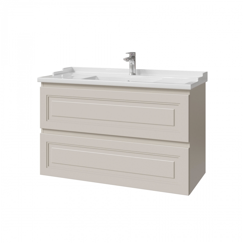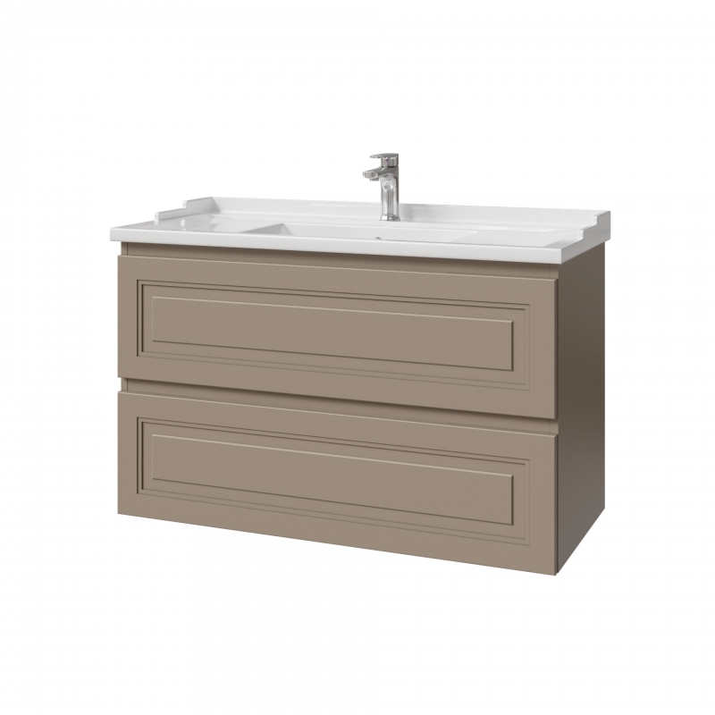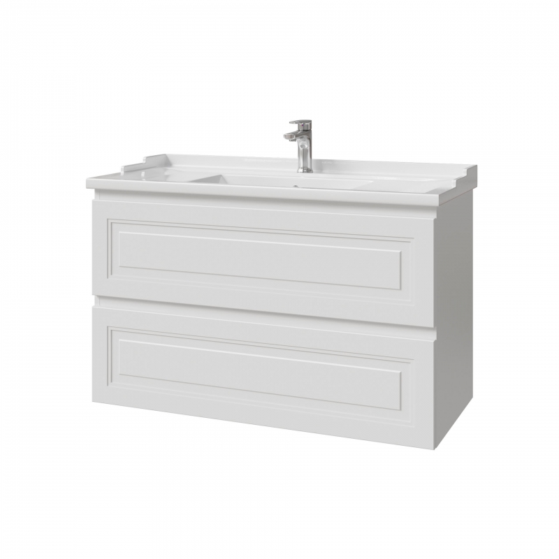 Тумба подвесная для раковины 100см с 2 ящиками. Ручки интегрированные в фасады. Выпускается в любых отделках из реестра MODERN. Раковина продается отдельно.