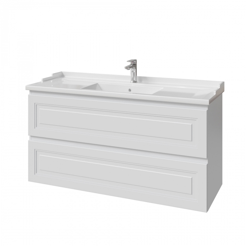 Тумба подвесная для раковины 120см с 2 ящиками. Ручки интегрированные в фасады. Выпускается в Эмалях из реестра CLASSIC.