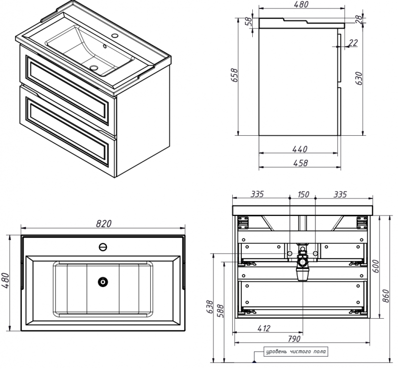 | Габаритные размеры изделия, ш/г/в, в см | 79/ 45,8/ 60 |
