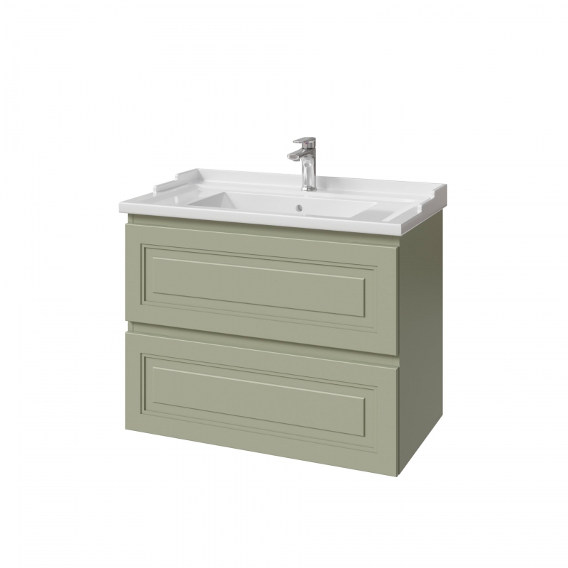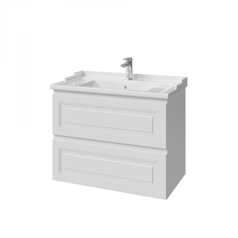 Тумба подвесная для раковины 80см с 2 ящиками. Ручки интегрированные в фасады. Выпускается в Эмалях из реестра CLASSIC.
