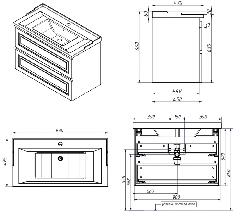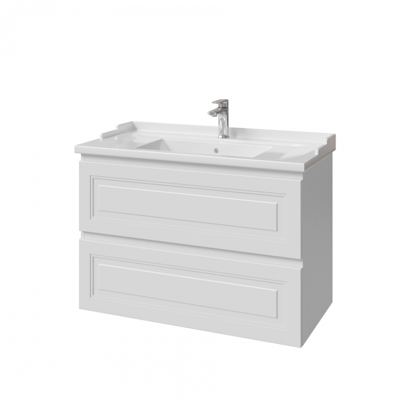 Тумба подвесная для раковины 90см с 2 ящиками. Ручки интегрированные в фасады. Выпускается в Эмалях из реестра CLASSIC.