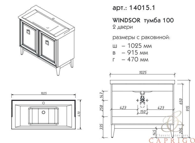 WINDSOR тумба 100 выпускается в отделках: категория ЭМАЛИ – SPECIAL ENAMEL category реестра отделок CLASSIC раковина (фаянс)